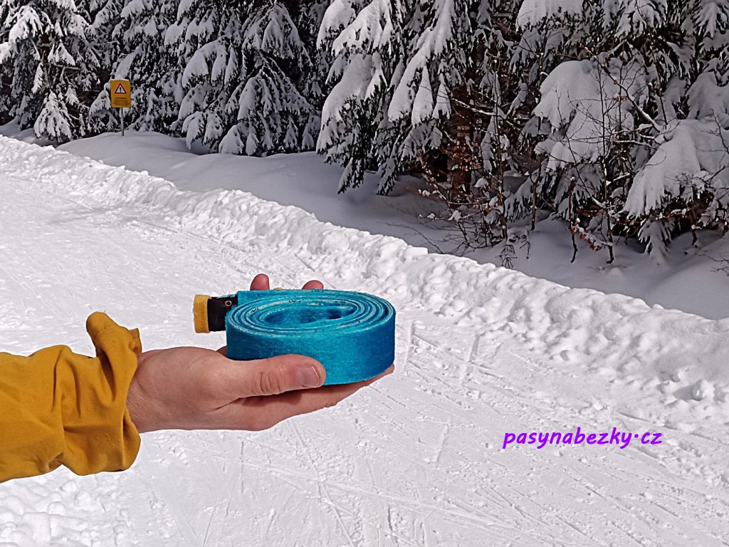 Łącznie z klejem, który jest już na pasku. Klej w żadnym wypadku nie pozostaje na nartach.